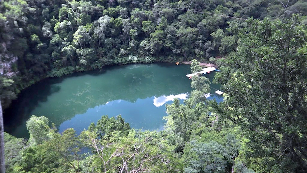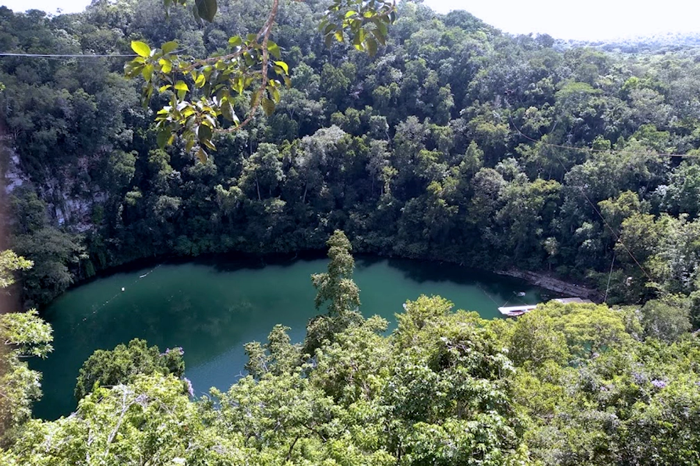 El cenote azul, el más grande de toda la región, cuenta con un diámetro de 250 metros, aquí podrás practicar kayak y circuitos de tirolesa a 80 m de altura, para después disfrutar del cenote patos, con 200 m de diámetro y por último a 4 km de distancia se encuentra el cenote Km 41, dónde es difícil acceder, pero la vista vale la pena, y el fenómeno de la salida de los murciélagos al anochecer, es espectacular.