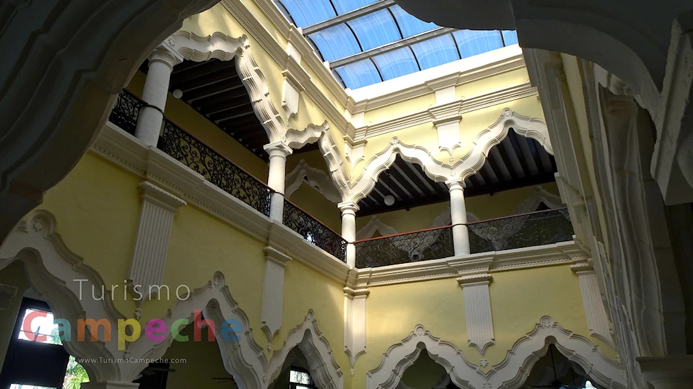 Con sus dos niveles sobresale de los hermosos edificios del centro de Campeche, sobre todo porque en el segundo nivel son de admirarse sus balcones con ventanas de hierro forjado y que en las mayoría de ellas pueden verse las letras “FCI” que son las siglas del padre del gran hacendado, quien fue el principal impulsor de construir una casa tan hermosa como esta.